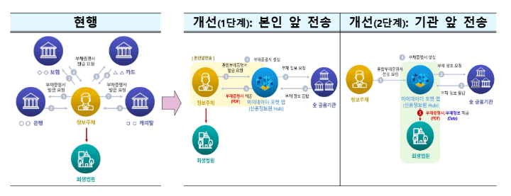 하지만 금융위원회에서 발표한 개선안에 따르면 2026년 상반기 내에 개인이 여러 금융기관의 부채 정보를 한 번에 통합하여 발급받을 수 있는 시스템이 도입될 예정입니다.